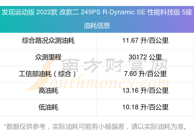 依据车主实测数据,该车型低油耗为10.18L/100km,高油耗为13.16L/100km,归纳路况众测油耗为11.67L/100km,工信部归纳油耗为7.60L/100km。