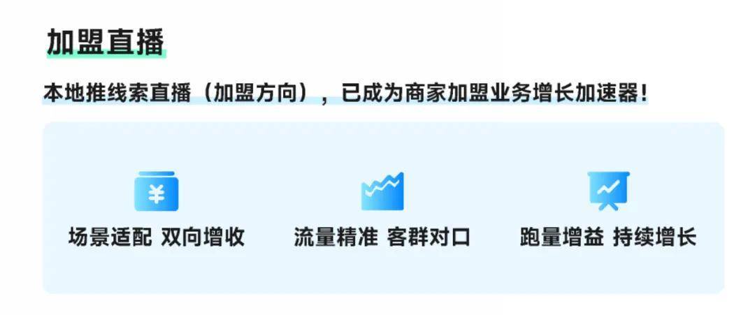 值得注意的是,本地推线索直播还已经成为商家「加盟业务」增长的加速器,运营社了解到,有商家白天团购引流,还可以夜间借助本地推竞争流量收客资拓加盟,实现实体和加盟业务联动,形成正向增长。数据显示,某文旅商家通过酒店加盟线上直播实现留资成本减低 15%,看播留资率提升 192%,线%。